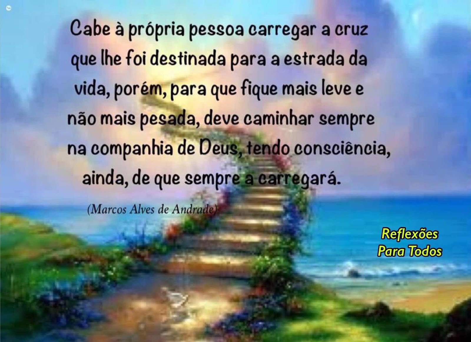 Cabe à própria pessoa carregar a cruz que lhe foi destinada para a estrada da vida, porém, para que fique mais leve e não mais pesada, deve caminhar sempre na companhia de Deus, tendo consciência, ainda, de que sempre a carregará.