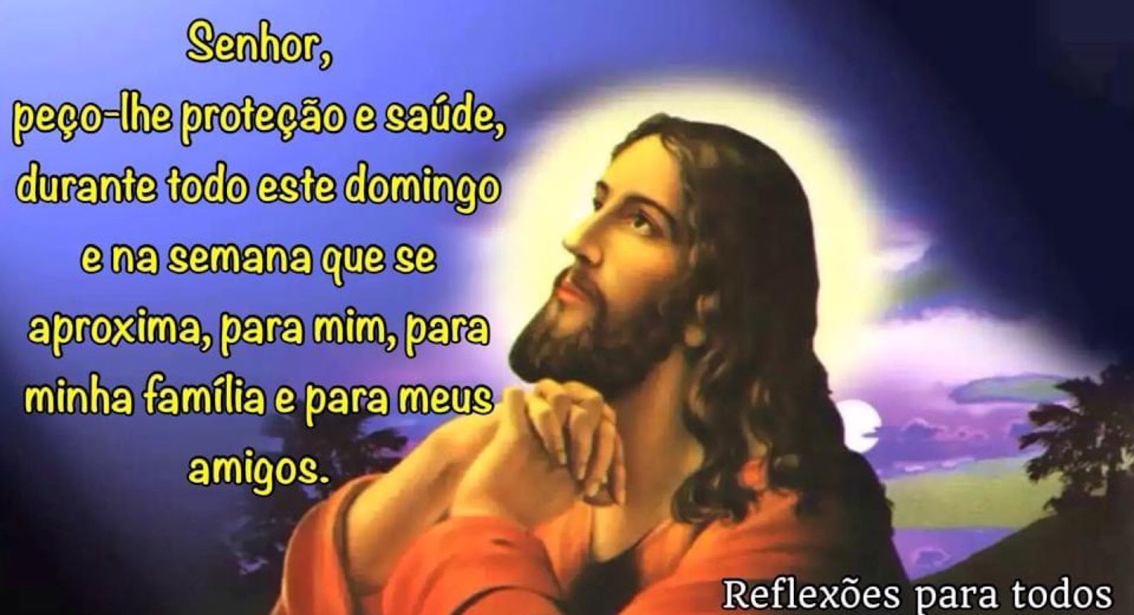 Venho lhe pedir proteção e saúde, durante todo o dia e na semana que se aproxima, para mim, para minha família e para meus amigos.