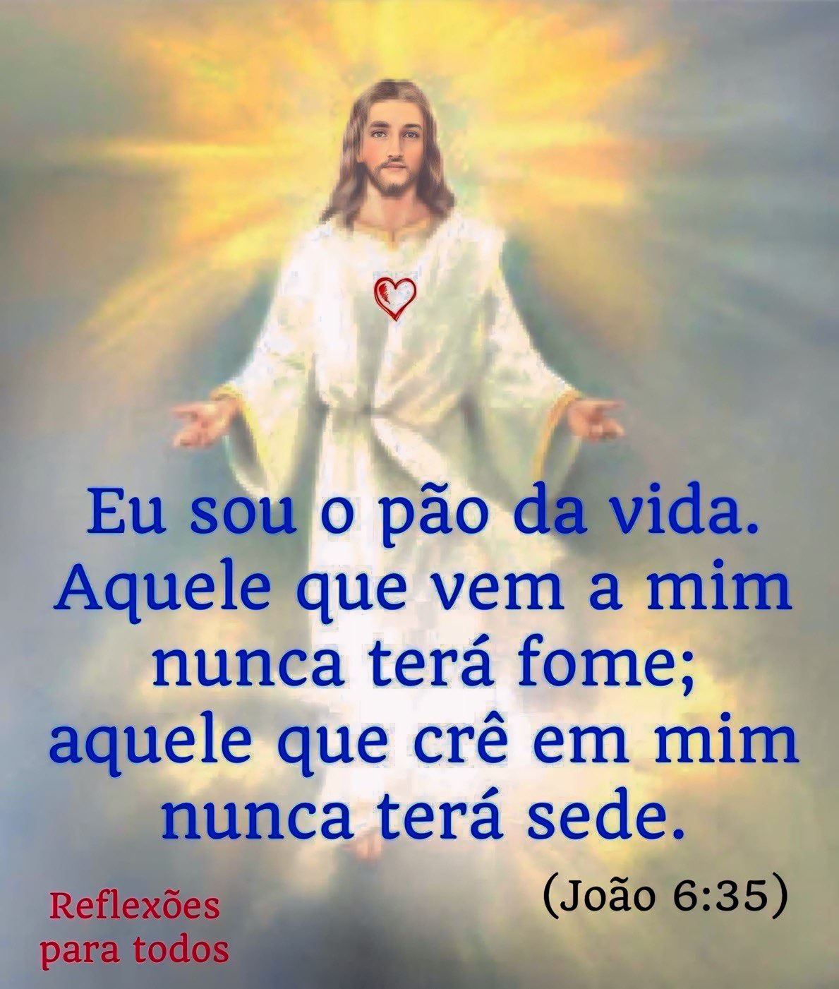 E Jesus lhes disse: Eu sou o pão da vida; aquele que vem a mim não terá fome, e quem crê em mim nunca terá sede.